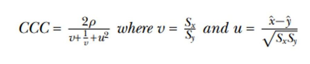 - Concordance correlation coefficient (CCC), where after the sensor and reference measurements are recorded, both are normalised relative to the maximum reference measurement (Equation 1)